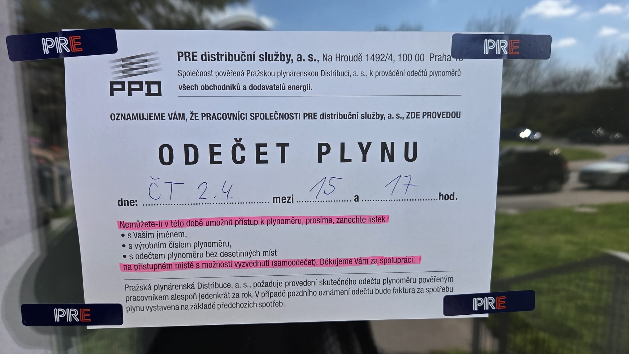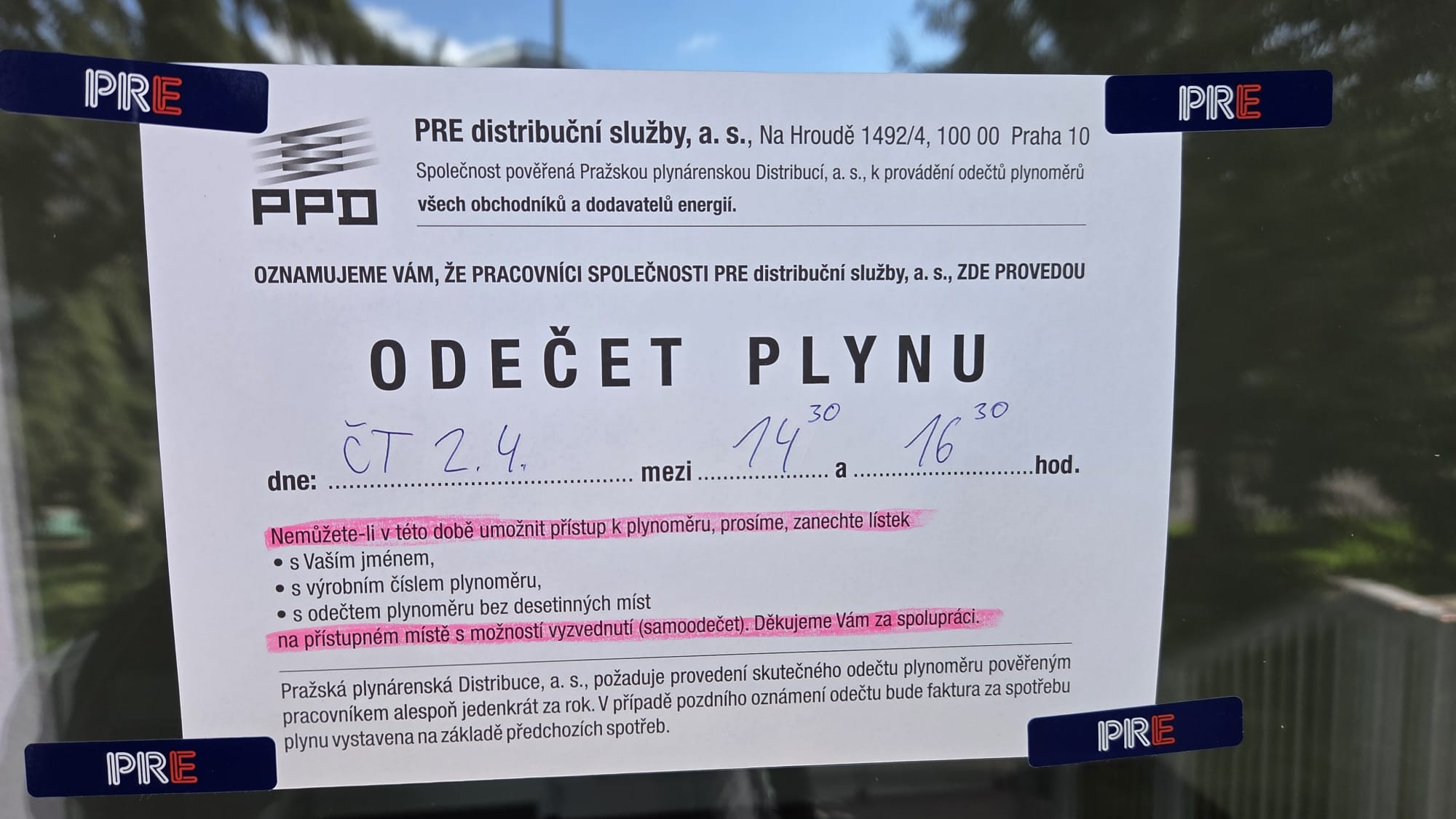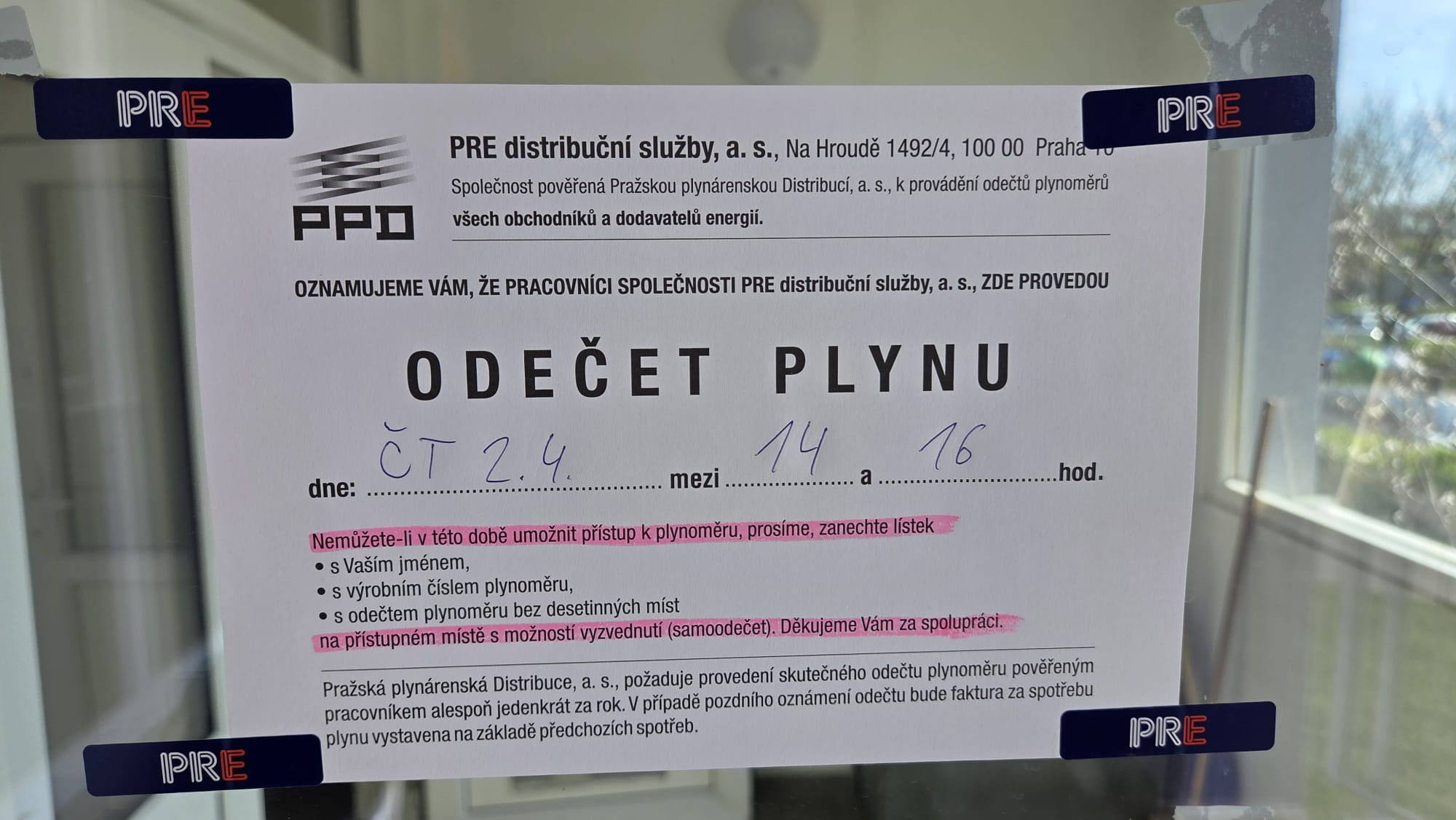 Prosíme o zajištění Vaší přítomnosti či provedení samoodečtu. Více informací v přiložených dokumentech.